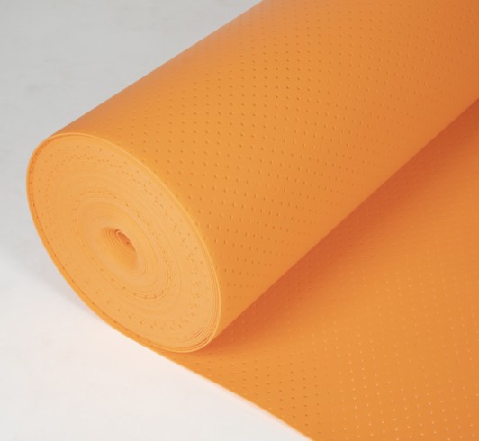 特殊的壓紋可有效的降低聲音分貝,起到良好的隔音效果;在施工的過(guò)程中地板膜能有效防止鋪設(shè)地板時(shí)地板材移位的現(xiàn)象,起到良好的止滑作用。